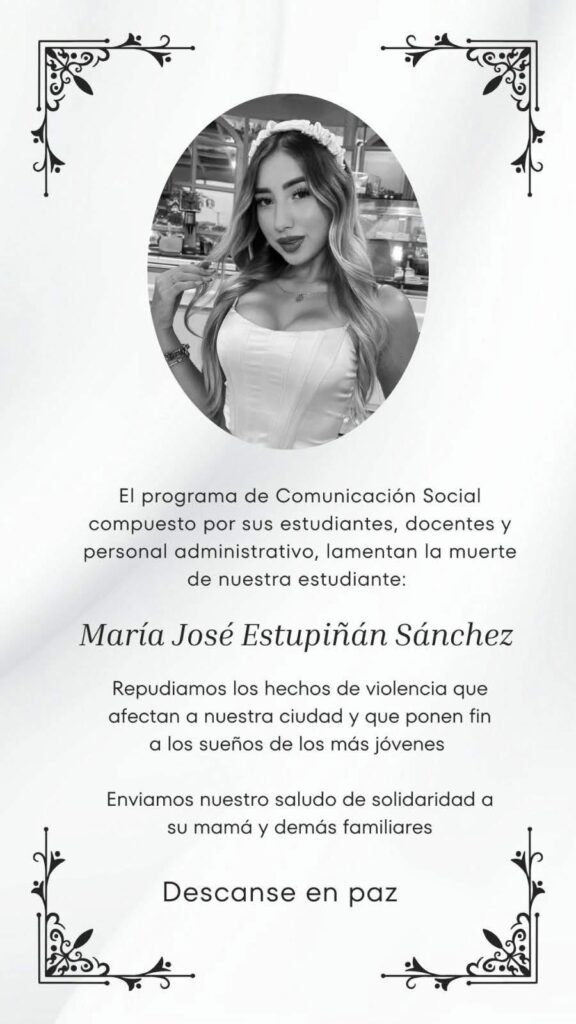 María José Estupiñán, quien estudiaba Comunicación Social en la Universidad Francisco de Paula Santander, se encontraba en la puerta de su vivienda al momento del ataque.