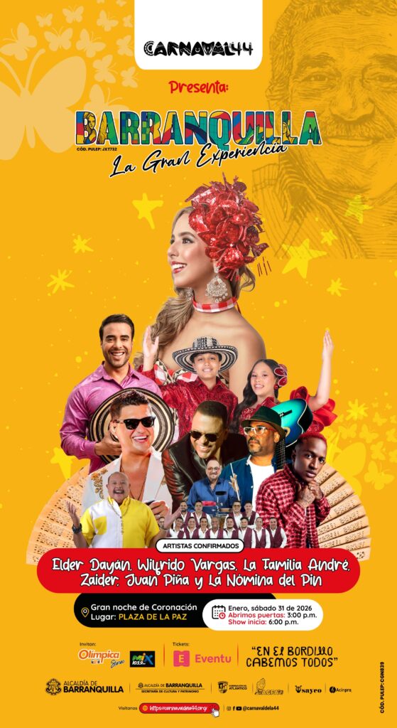 El evento -que se realizará el 31 de enero de 2026, en la Plaza de la Paz, a partir de las 6:00 p.m., bajo el nombre: Barranquilla, la gran experiencia- tiene como otra novedad la participación de 10 artistas barranquilleros que rendirán homenaje a la ciudad: Savannah, Linica, Amaya, Giany, Lalie, Edd, Akanny, Reyzon, Jorge Qband y José Cury. Entre cada presentación, el ambiente musical estará a cargo de los DJs Jerson Dj, Dj Zurdo, Daniela Olivero y Harry Torres. La gran noche de coronación tendrá como eje central un espectáculo dirigido por el productor artístico del Carnaval de la 44, Mauricio Cherques, con una puesta en escena que integrará a más de mil bailarines, pertenecientes a danzas, disfraces, escuelas y comparsas que representan el alma viva de la fiesta.