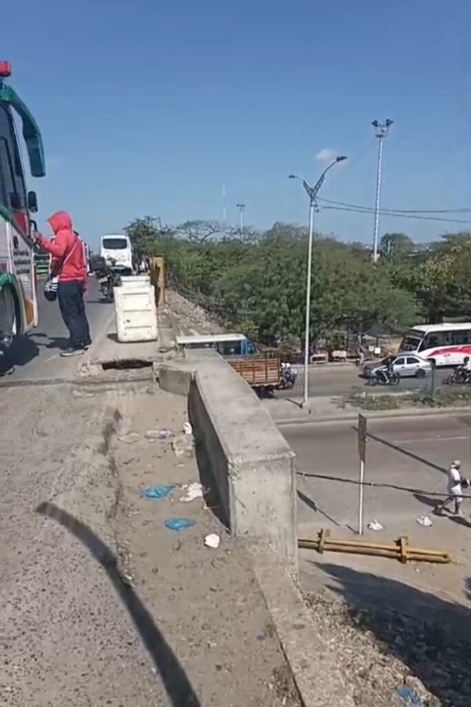 Los usuarios que transitan a diario por el puente de la Cordialidad, infraestructura que interconecta a la ciudad de Barranquilla con los municipios del centro y sur del Atlántico, además de Cartagena, han expresado preocupación tras el desprendimiento de una baranda metálica que protege de una caída a los peatones que circulan por el andén.