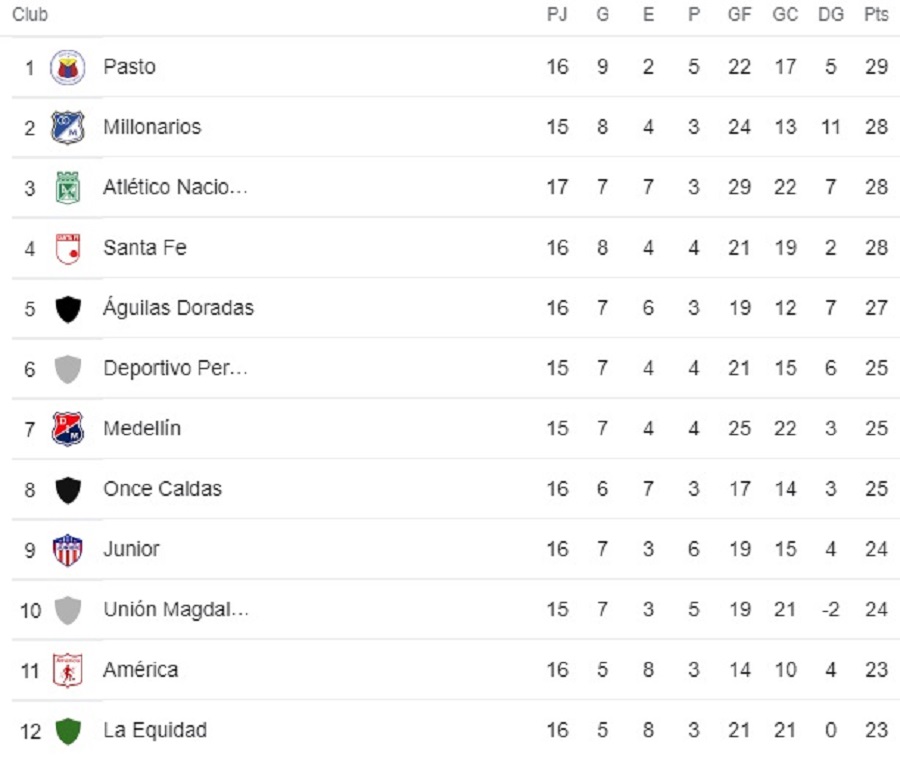 Ya en los compromisos de ayer domingo contó con la fortuna de dársele dos marcadores: el empate a uno de Nacional y Águilas Doradas, que no permitió que el verde de los paisas, que es actualmente tercero, se le distanciara con 30 puntos, y el dorado de Rionegro, ubicado en la quinta posición, se le alejara con 29; y la victoria del Cali sobre América, con un verde caleño ya eliminado que no permitió con su triunfo que el Diablo Rojo sobrepasara al de Barranquilla.