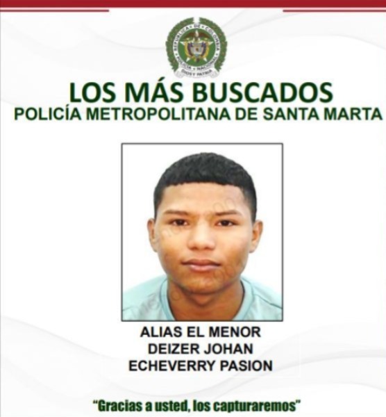 Con tan solo 20 años de edad, Deizer Johan Echeverry Pasión, alias el Menor, figuraba en el cartel de los más buscados por la Policía Metropolitana de Santa Marta, pero nunca pudieron encontrarlo. Sin embargo, quien si lo ubicó y le segó la vida fue un sicario durante la noche del jueves 8 de mayo.