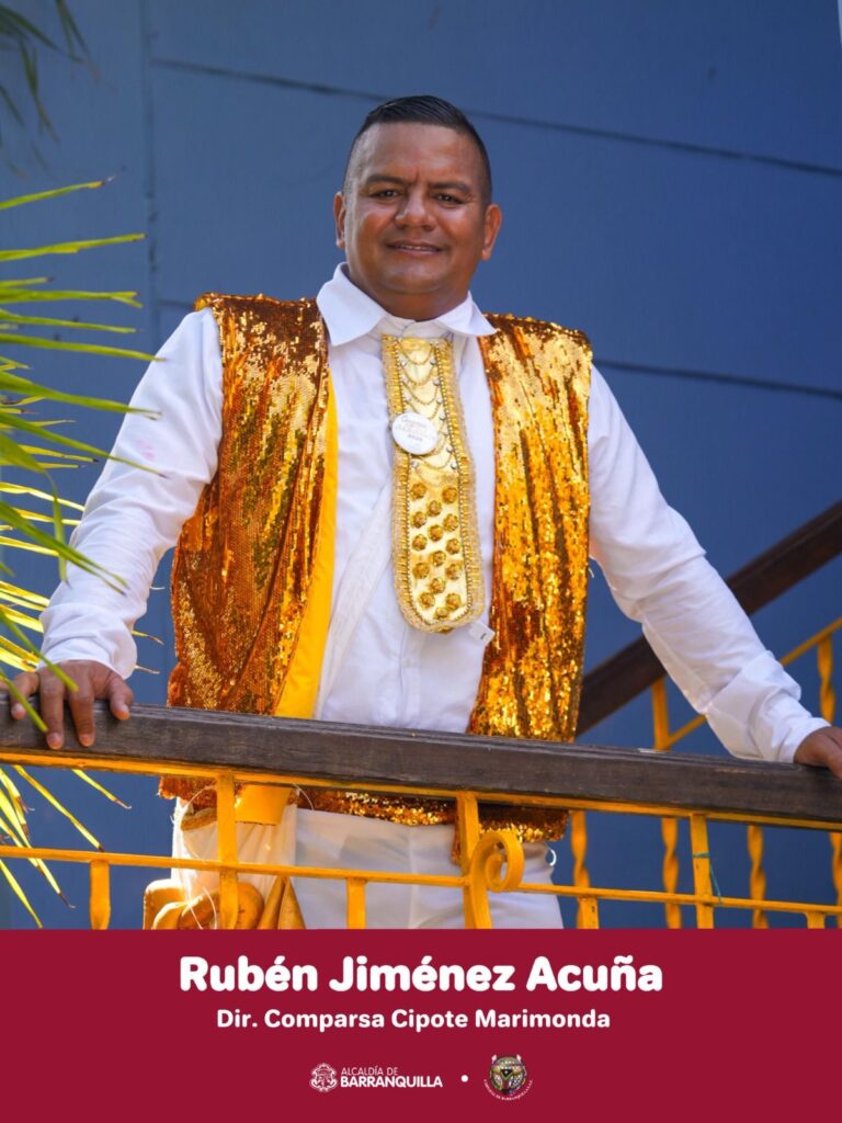 Rubén Jiménez: director de Cipote Marimonda de Montecristo, una comparsa de tradición popular que cuenta con 18 años de trayectoria en el Carnaval y ha sido ganadora de 15 Congos de Oro. Hizo parte de la cumbiamba Currambita la Bella en 1985 y desde ahí ha forjado una trayectoria que le llevó a crear, en la actualidad, una de las marimondas más reconocidas del Carnaval.