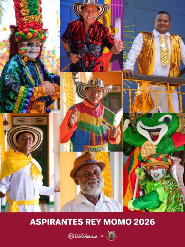 Carnaval de Barranquilla recibió la postulación de siete carnavaleros que aspiran a convertirse en el rey Momo del Carnaval 2026, figura que, junto a la reina, Michelle Char Fernández, liderará la fiesta más grande de Colombia del 14 al 17 de febrero.