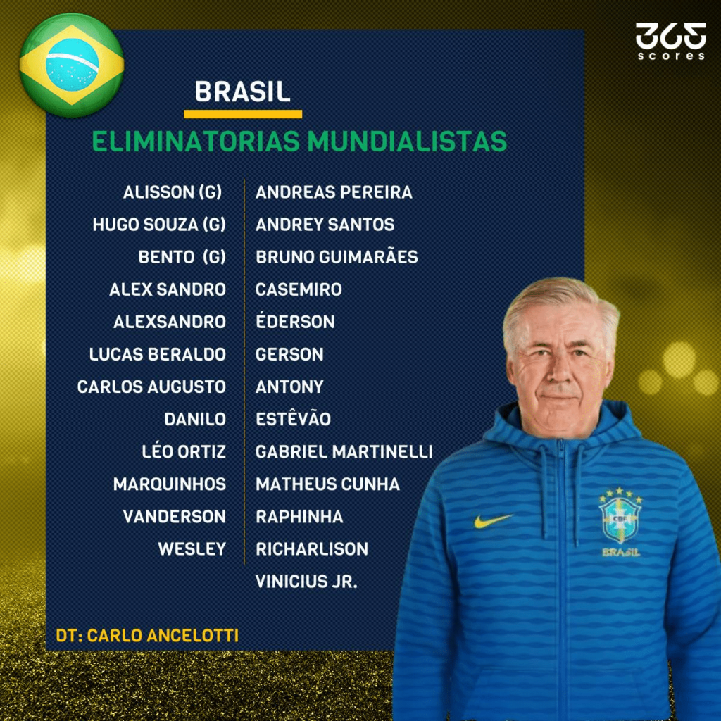 El retorno de Casemiro y el que Endrick, Neymar y Rodrygo no fueran citados, marcó el primer llamado que hizo el estratega italiano.