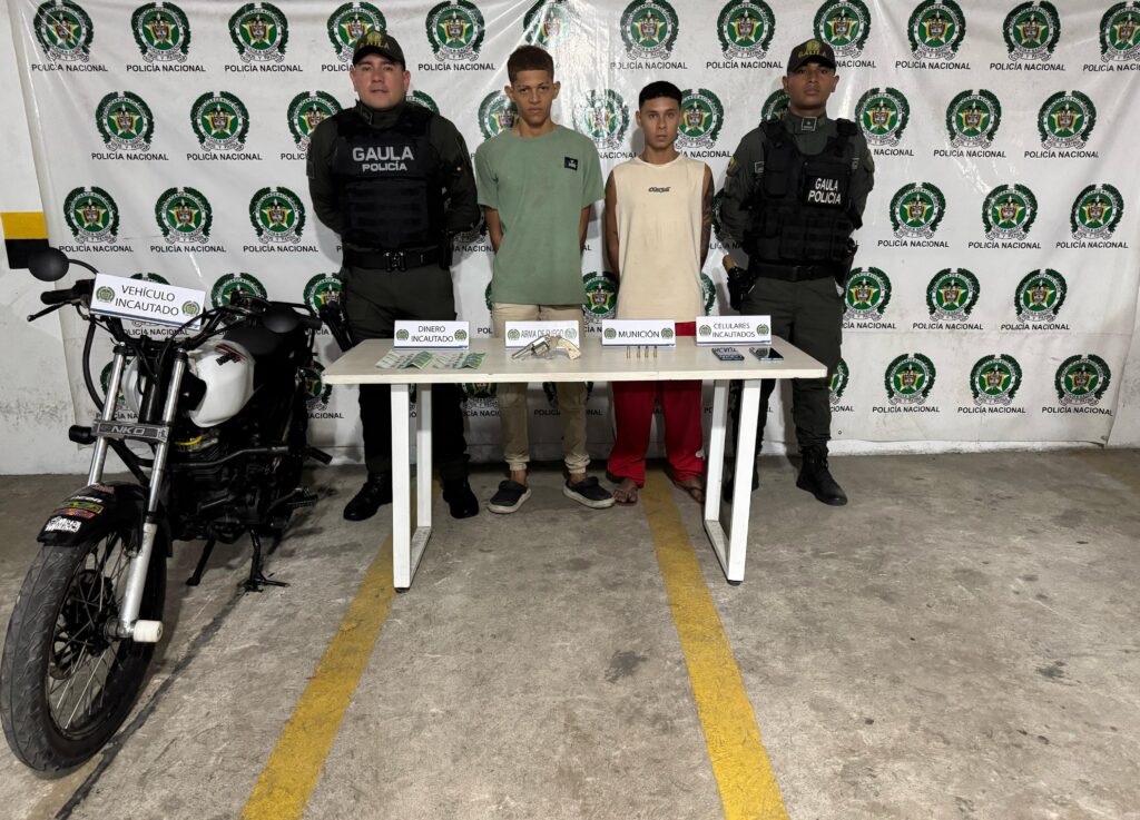 “El primer operativo se registró en el barrio San Roque, donde fueron capturados en flagrancia dos presuntos delincuentes, quienes, al parecer, serían integrantes del grupo delincuencial común organizado los Costeños. Además, serían dinamizadores del delito de la extorsión a nombre de este grupo delincuencial en el suroriente de la ciudad. Serían los encargados de entregar panfletos extorsivos y de intimidar con armas de fuego a las víctimas”, dijo en su informe la Policía Mebar.