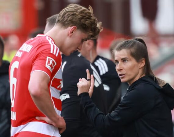 Posted abril 18 - 11:11 am ¡Las cámaras en ella! Marie-Louise Eta hace historia al ser la primera DT en dirigir un club masculino