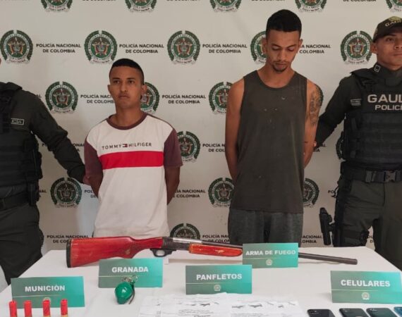 Posted octubre 23 - 9:27 am Hallan granada, escopeta y panfletos a presuntos miembros de los Costeños Orientales en Sabanagrande