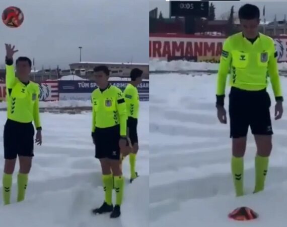 Posted enero 26 - 4:41 pm “Veamos si se puede jugar”: con la nieve hasta los tobillos, pero referí en Turquía debía verificar si la bola daba rebote