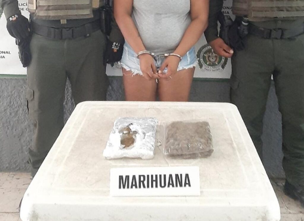 La marihuana fue incautada y la mujer fue capturada y dejada a disposición de la Fiscalía General de la Nación para que responda ante la justicia por los delitos que le atribuyen.