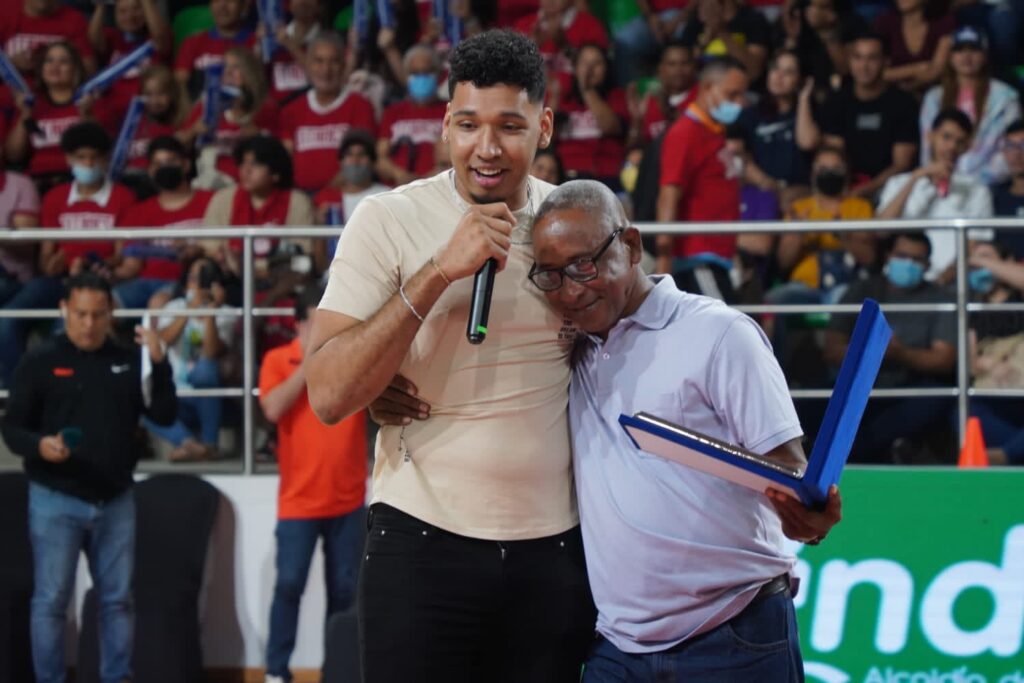 Jaime Echenique, basquetbolista barranquillero de la NBA, recibió honores en la previa del juego.