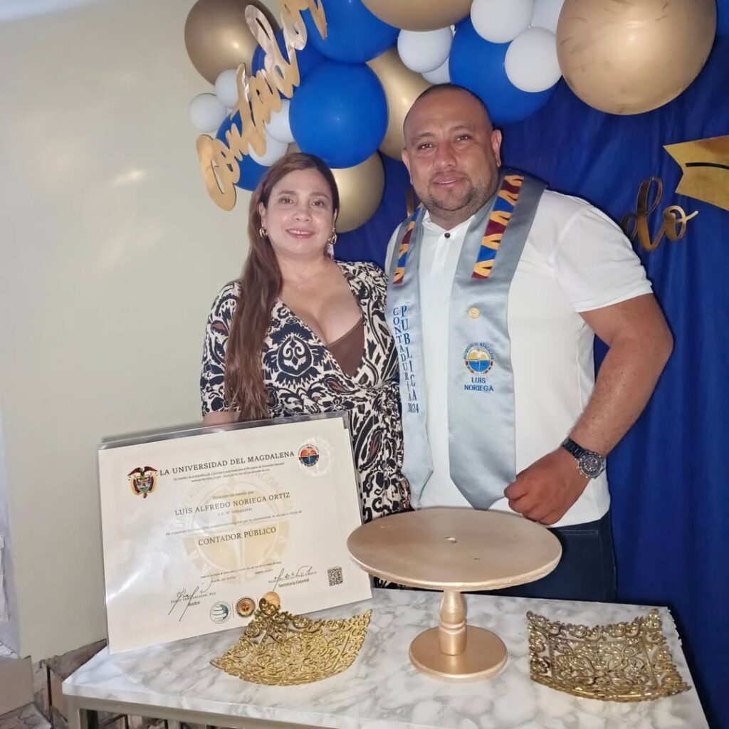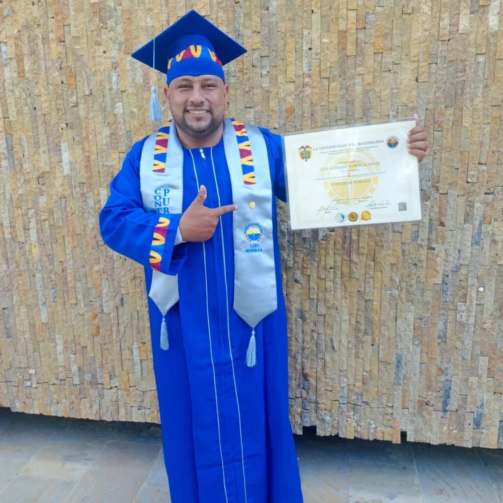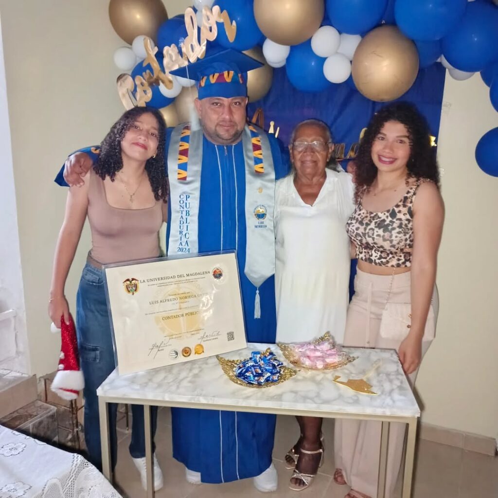 Sus sueños iniciaron en 2017 en la Universidad del Magdalena y culminaron el pasado 20 de diciembre del 2024 tras cinco años de lucha. Allí recibió su diploma como profesional acompañado por su madre y una de sus hijas, quienes no quisieron perderse ese momento único y especial para Luis Noriega.