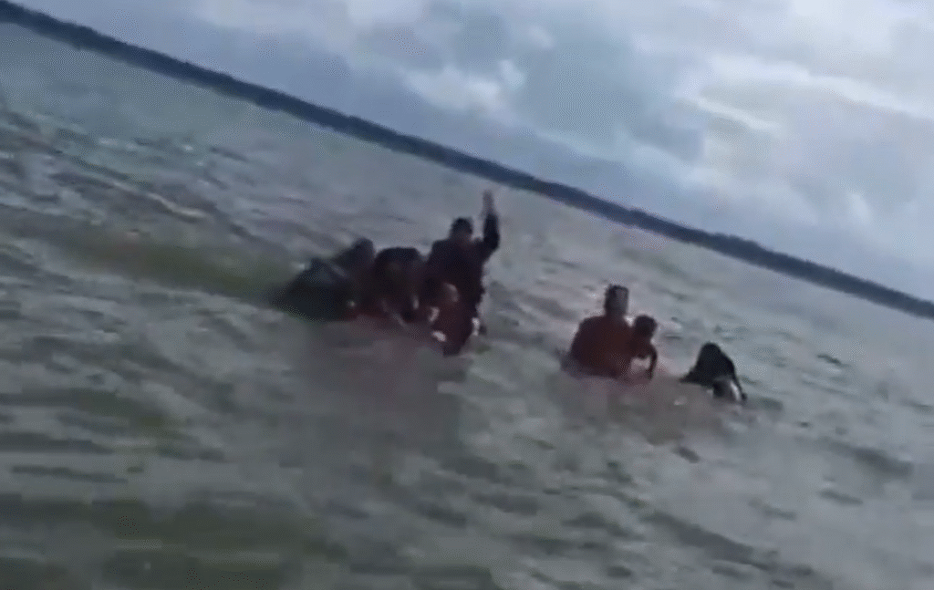 Momento en que pescadores de la zona rescataban a un grupo de náufragos.