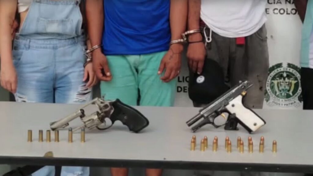 La detención se llevó a cabo cuando agentes, en medio de sus labores de control, fueron alertados tras escucharse dos detonaciones cerca del lugar; al corroborar lo que sucedía, se encontraron a dos personas que resultaron lesionadas, al parecer, por estos sujetos.