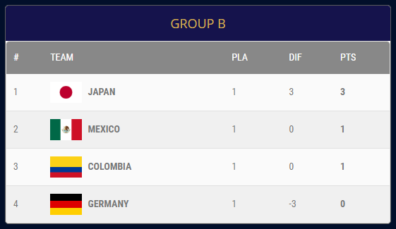 Colombia cerrará su Grupo B frente a Alemania, el lunes 3 de octubre, duelo difícil a pesar de que los teutones hayan caído este sábado 3-0 con Japón, que arrancó como líder en el B.