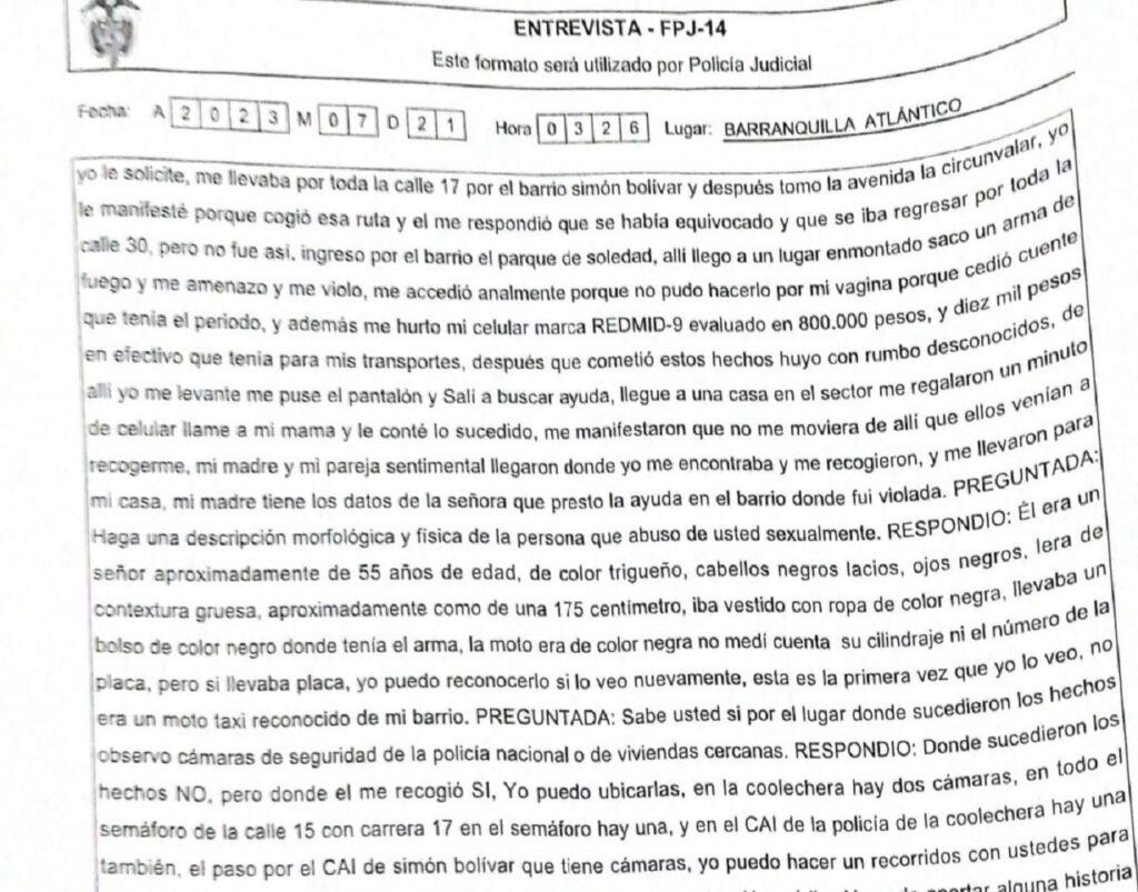 Una joven de 20 años de edad denuncia haber sido víctima de acceso carnal por parte de un sujeto que se hizo pasar por mototaxista, hechos aberrantes registrados en el municipio de Soledad, Atlántico.