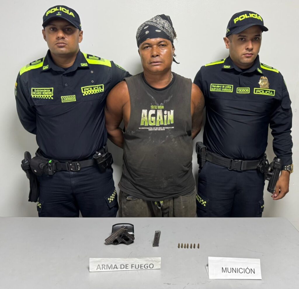 En un tercer hecho, registrado en la Transversal 1C con carrera 2C del barrio Santo Domingo, un hombre en estado de embriaguez fue sorprendido realizando disparos al aire. Al momento de practicarle un registro, se le encontró un arma de fuego tipo pistola calibre 7 mm, un proveedor y una munición calibre 7.56 mm. El sujeto fue capturado y puesto a disposición de las autoridades competentes.