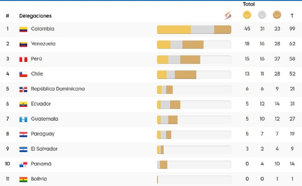 El oro conquistado en la victoria de la Selección Colombia de Voleibol Masculina sobre su similar de Chile le permitió al anfitrión seguir tomándole distancia a Venezuela, su más inmediato perseguidor en el tablero general de los Juegos Bolivarianos Valledupar 2022, en el que la Tricolor ya contabiliza un total de 99 preseas.